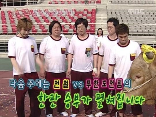 무한도전은 초창기에 ‘기차와의 달리기 대결’, ‘목욕탕 배수구와의 물 빼기 대결’ 등